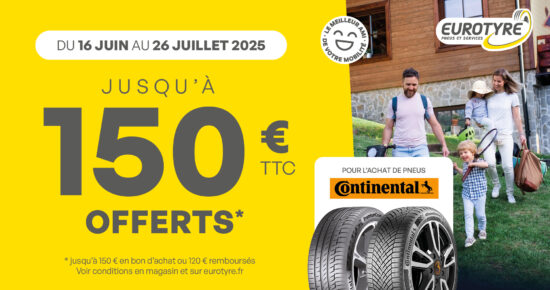 Du 17 mars au 26 avril 2025, profitez de notre offre exceptionnelle pour l’achat de pneus Continental : jusqu’à 150€ […]