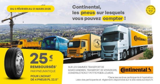 Du 2 juin au 31 juillet 2025, pour l’achat de 2 pneus poids lourds Continental, profitez de 25€ HT remboursés […]