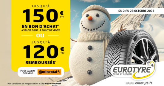 Du 2 Mai au 30 Juin 2023, chez Eurotyre, profitez d’une offre exceptionnelle sur les pneus Continental ! Jusqu’à 20€ […]